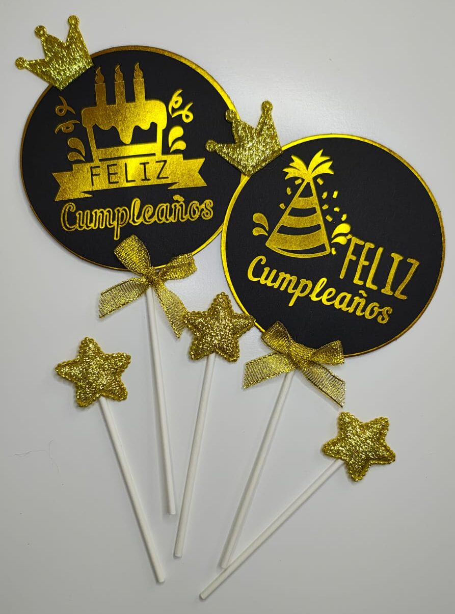 Cake Topper Feliz Cumpleaños Circular Negro C/ Dorado Modelos Surtidos IMP. 52291$ 1.390,00