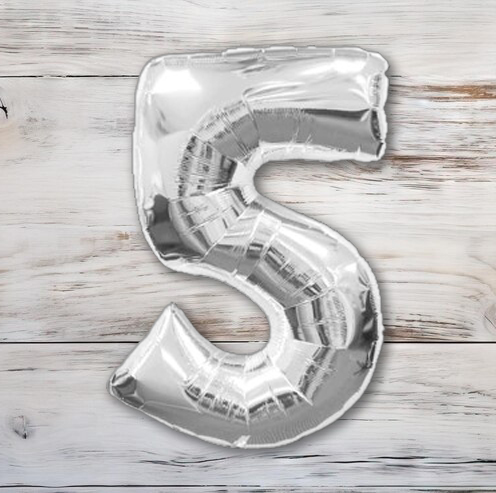 Globo Metalizado Plateado Chico 40 cm. N° 5Globo Metalizado Plateado Chico 40 cm. N° 5