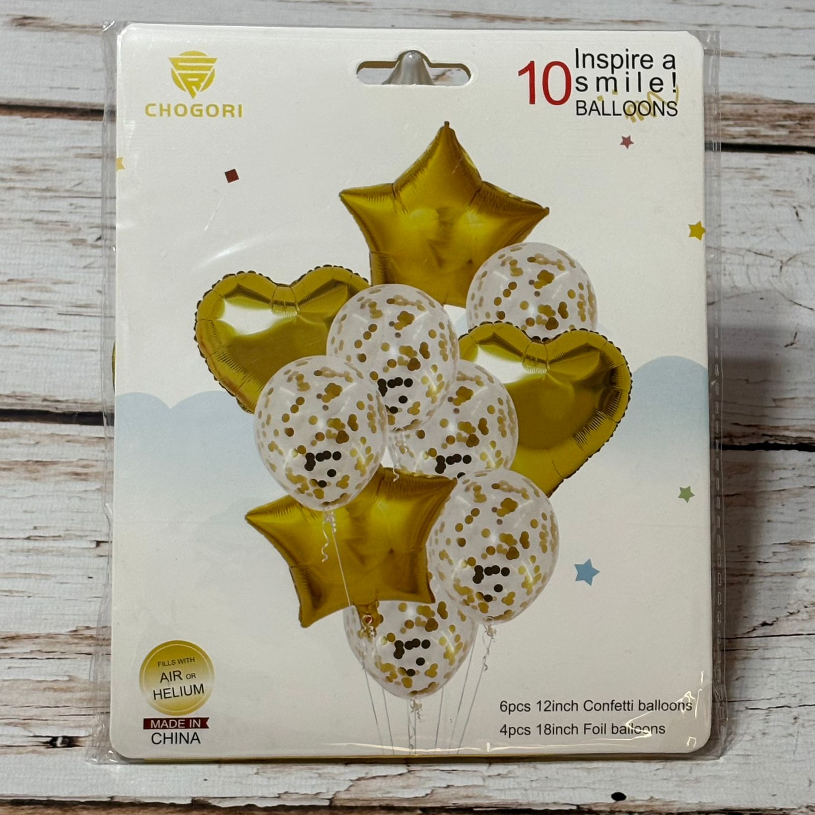 SET 10 GLOBOS CORAZON Y ESTRELLA METALIZADO LATEX CONFETTI DORADO IMP. 41432$ 2.950,00