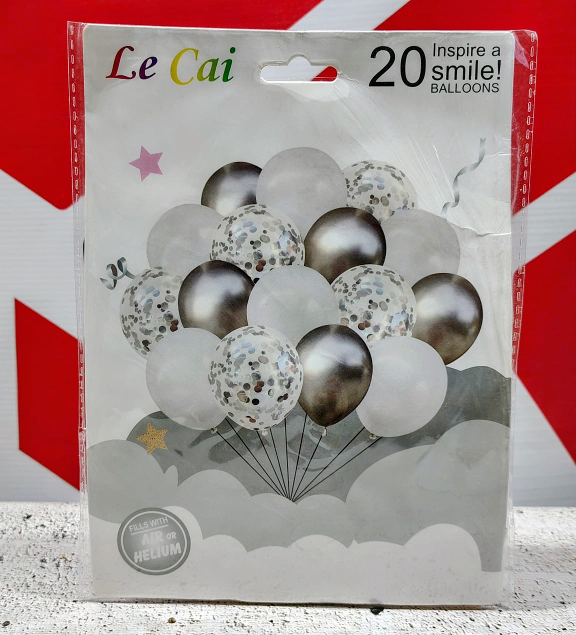 SET 20 GLOBOS LATEX CONFETTI TRICOLOR PLATA/BLANCO IMP 46438$ 3.250,00