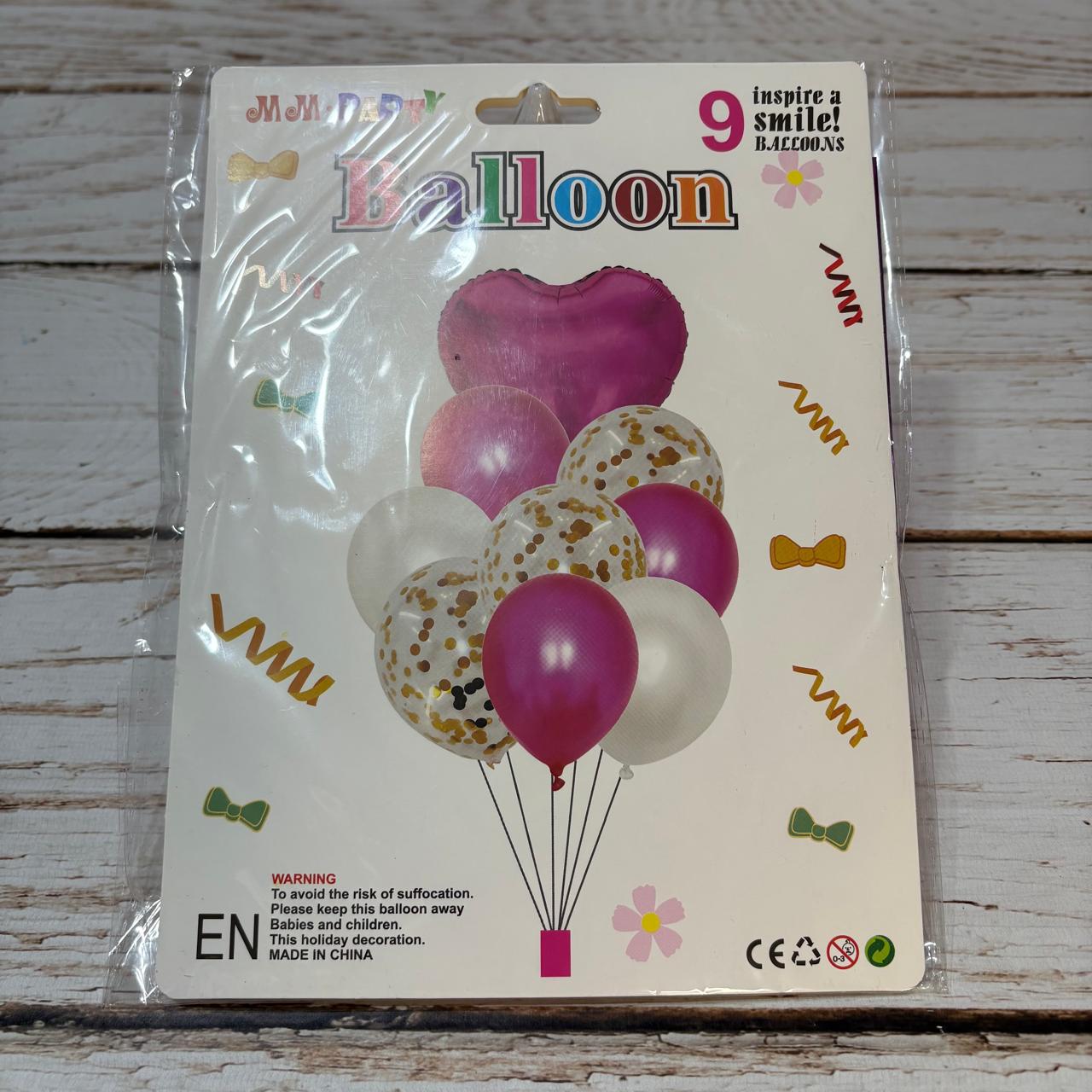 SET 9 GLOBOS CORAZON METALIZADO LATEX CONFETTI FUCSIA IMP. 38345$ 2.450,00
