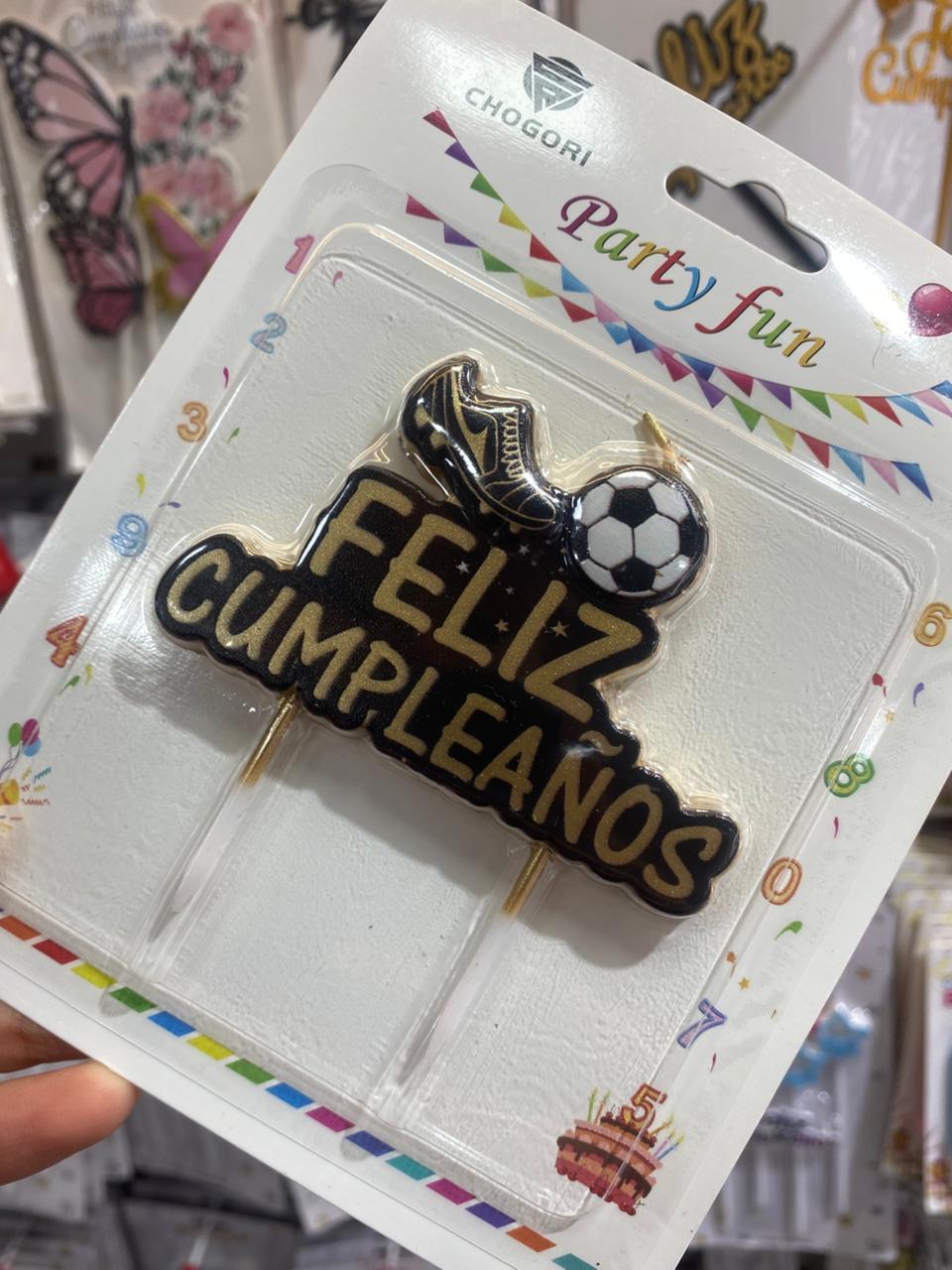 Vela Cake Topper Feliz Cumpleaños Botín y Pelota IMP. 52401Vela Cake Topper Feliz Cumpleaños Botín y Pelota IMP. 52401
