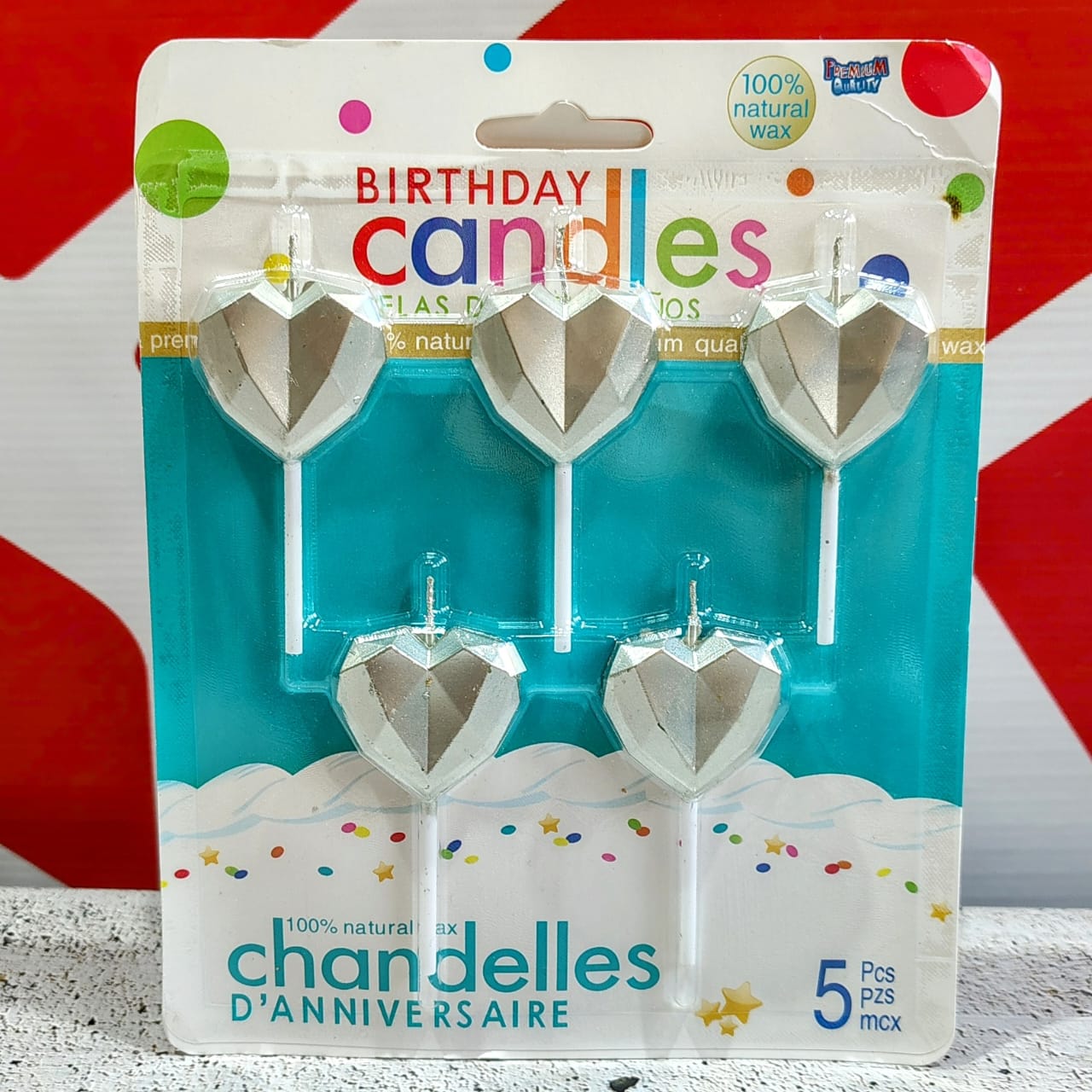 Vela Corazón Plateada Facetada x 5 unid. IMP. 37134