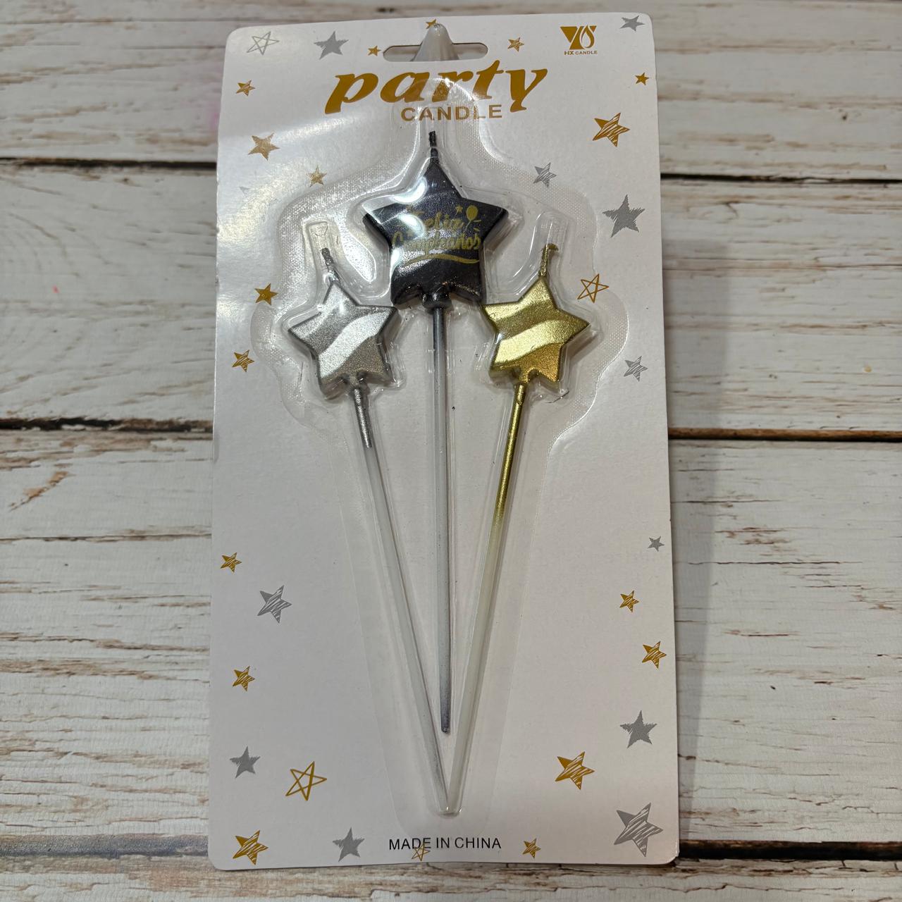Vela Metalizada Estrella Feliz Cumple x 3 unid. IMP.38411Vela Metalizada Estrella Feliz Cumple x 3 unid. IMP.38411